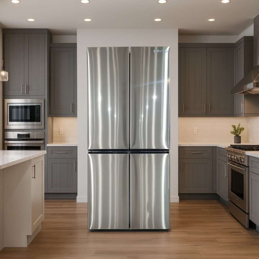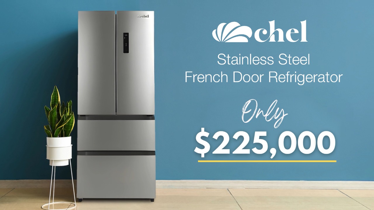Chel is our in-house brand, designed and engineered specifically for the Guyanese market. This 439-litre French door model combines reliability, performance, and modern design to meet the needs of today’s household. With exceptional interior space, efficient cooling, and a premium stainless-steel finish, it brings both functionality and style to your kitchen.