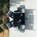 Elevate your outdoor hosting with the Eton 9pc Outdoor Dining Set, a masterclass in blending modern aesthetics with practical design. Wrapped in sophisticated black rattan, this cube set transforms any garden patio into a refined space perfect for seamless summer entertaining.