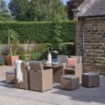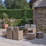 Elevate your outdoor hosting with the Eton 9pc Outdoor Dining Set, a masterclass in blending modern aesthetics with practical design. Wrapped in sophisticated black rattan, this cube set transforms any garden patio into a refined space perfect for seamless summer entertaining.