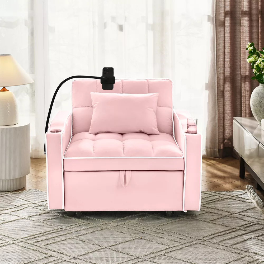 Khanne Convertible Sleeper Chair Pink