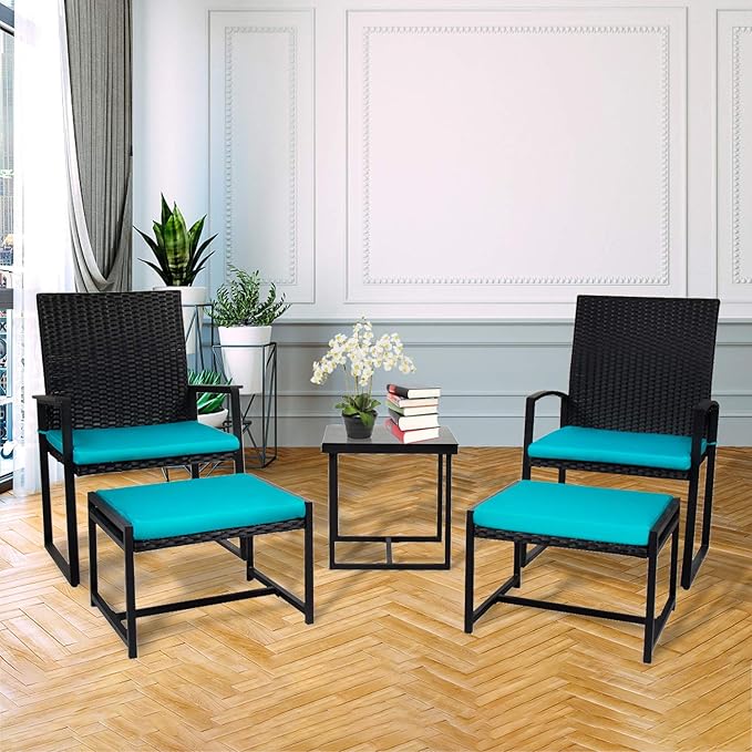 Upgrade your patio or balcony with a set that is as functional as it is stylish. This 5-piece wicker set is designed for people who want maximum comfort without cluttering their outdoor space. Whether you’re relaxing poolside or enjoying a morning coffee on your porch, this set offers a premium look with “tuck-away” convenience.