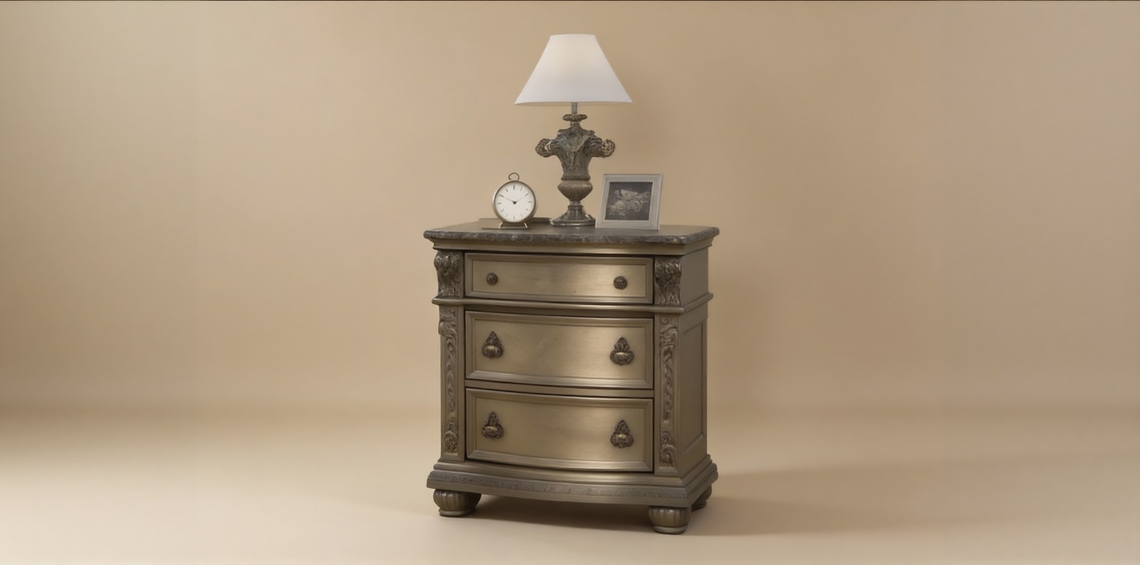 Experience unparalleled elegance with the Lavell Luxury Bedroom Set, a masterpiece of timeless design and superior craftsmanship. This collection features a plush upholstered bedframe, complemented by a spacious dresser with an ornate mirror, a matching chest, and coordinated nightstands. With elegant carved detailing, generous smooth-glide storage, and solid construction, the Lavell Set transforms your bedroom into a refined retreat of comfort and sophistication.