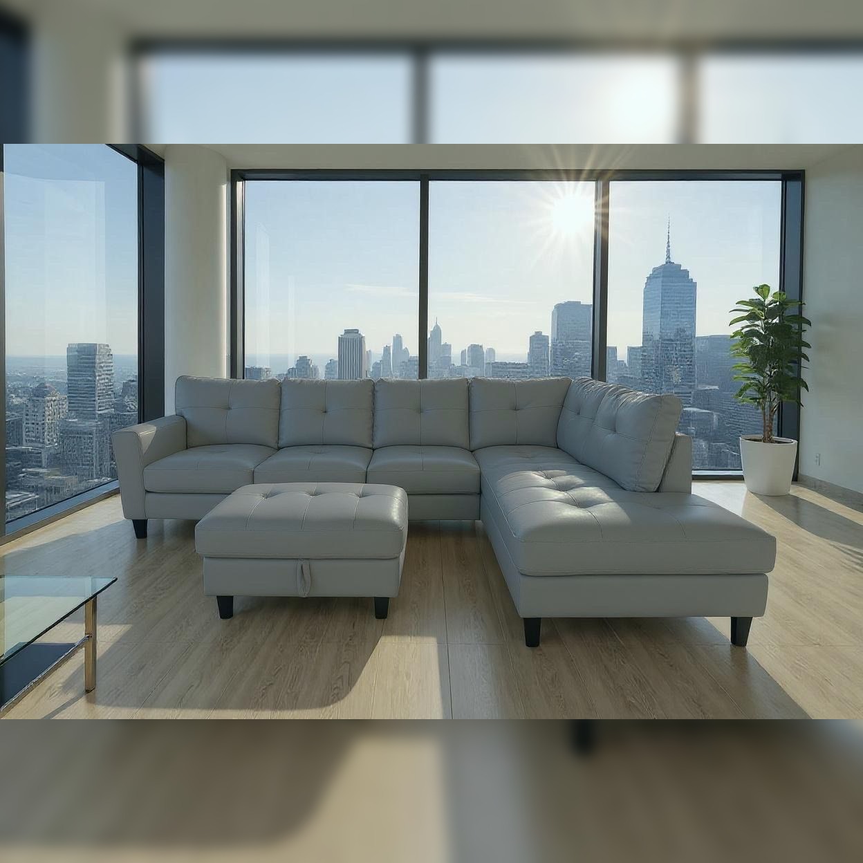 This sectional includes a versatile ottoman with built-in storage, providing additional seating and convenient space to store blankets, cushions, or other household items. Perfect for smaller homes or apartments, it delivers great comfort without compromising on style.