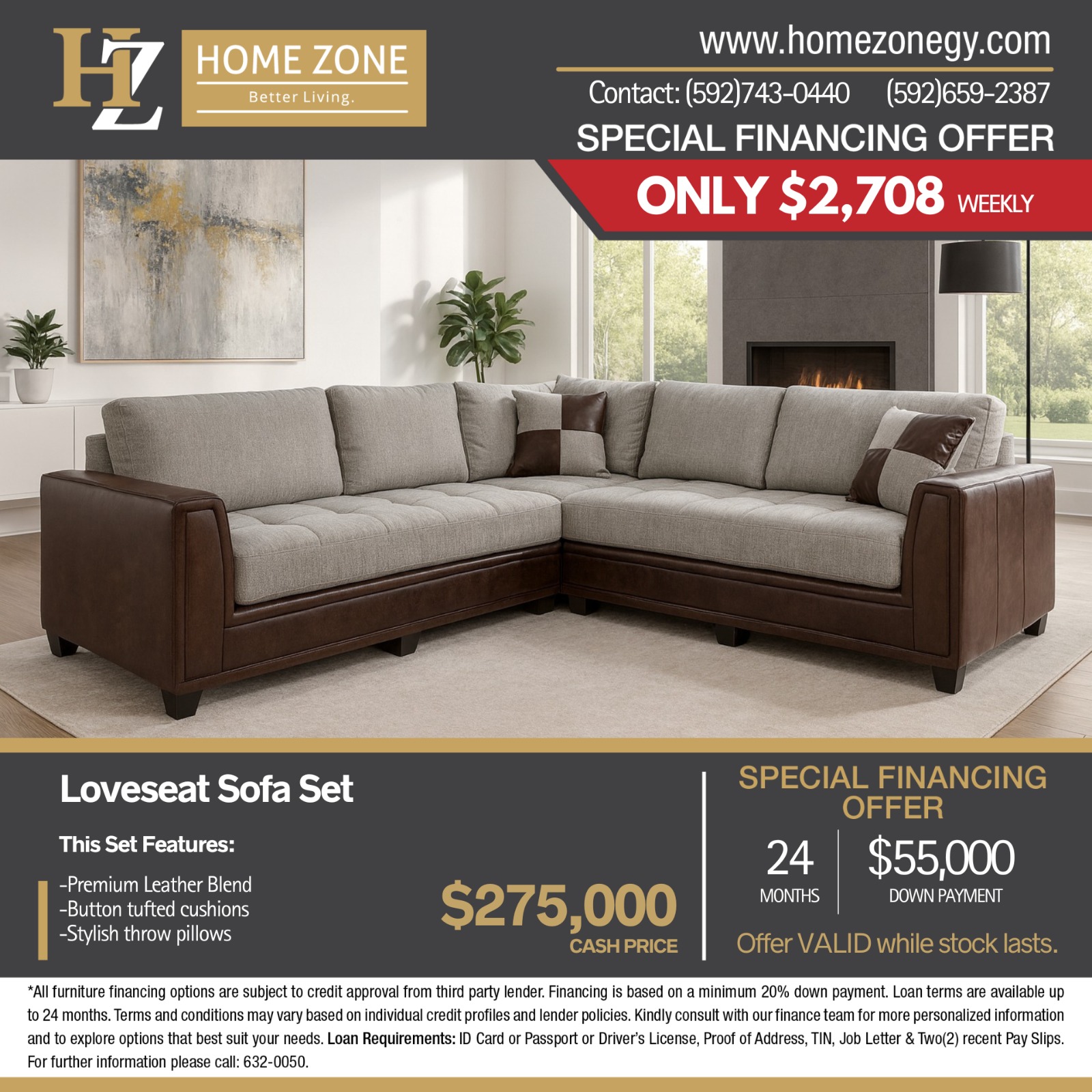 Redefine your living room with this show-stopping centerpiece. The Loveseat Sofa Set blends rich elegance with modern comfort — built to impress your guests and pamper your family every day.
