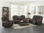 Wrapped in high-durability air leather, this set offers the look and feel of genuine leather with enhanced breathability and longevity. With added conveniences like hidden storage consoles and cup holders, your living room will remain organized and ready for entertainment.