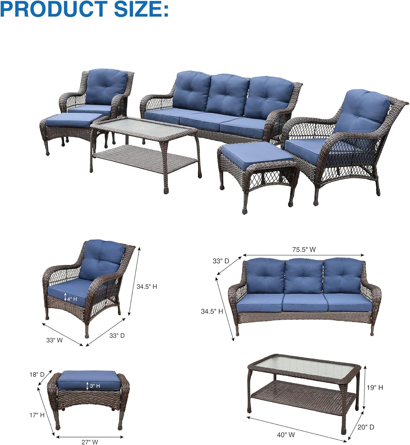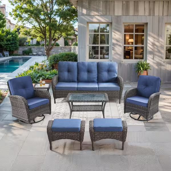 Elevate your outdoor sanctuary with the Resin Wicker 6-Piece Seating Set, an exquisite blend of antique charm and modern resilience. This stunning lounge set is meticulously designed to anchor your patio or backyard with deep, midnight blue tones, creating an inviting space for unforgettable year-round gatherings.