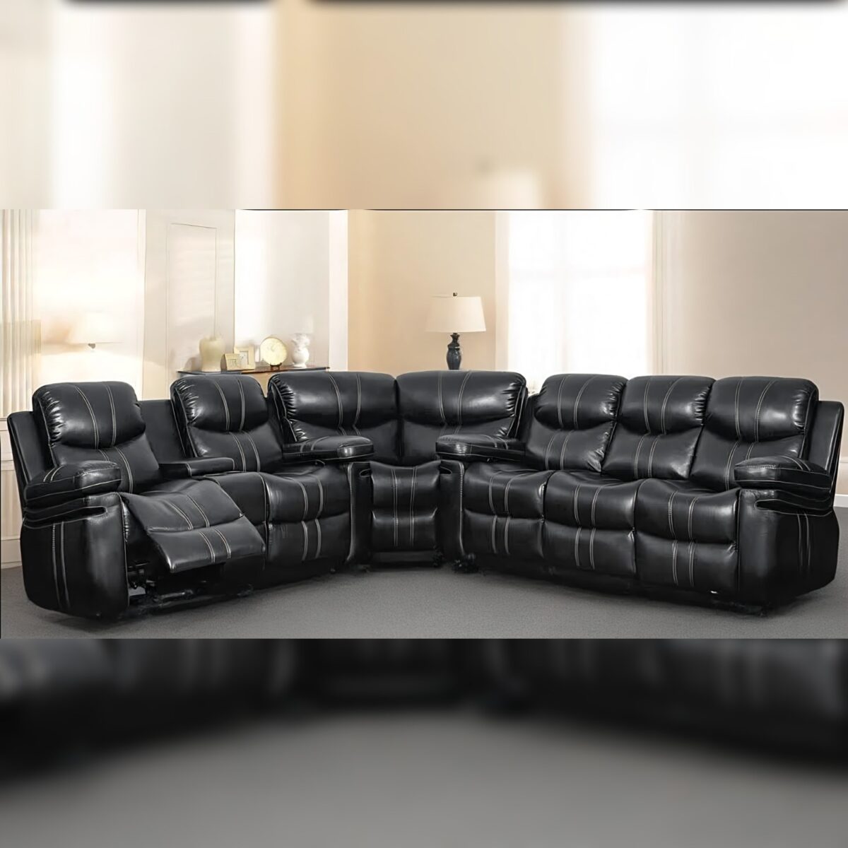 Imagine sinking into luxurious black air leather, kicking back on the recliners, and having everything you need right at hand with built-in storage and cupholders. Plus, its fully reversible design means it’ll fit your space, no sweat!